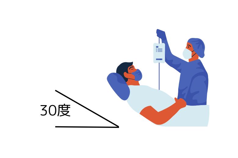 浸透圧療法による浮腫軽減や、ヘッドアップ30度の体位保持が有効です。これにより脳内圧の上昇を防ぎます。人工呼吸器を装着している場合、肺炎リスクを防ぐためにも適切な体位調整が必要です。