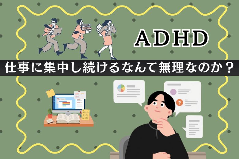 「仕事に集中し続けることができない」「つい忘れ物やミスをしてしまう」――そんな悩みを抱えている大人の方は少なくありません。これらは単なる性格の問題ではなく、発達障害の一つである**ADHD(注意欠如・多動症)**の特性によるものかもしれません。今回は、ADHDの特性が仕事に与える影響や、具体的な対策、そして自分に合った働き方を見つけるための方法について詳しく解説します。